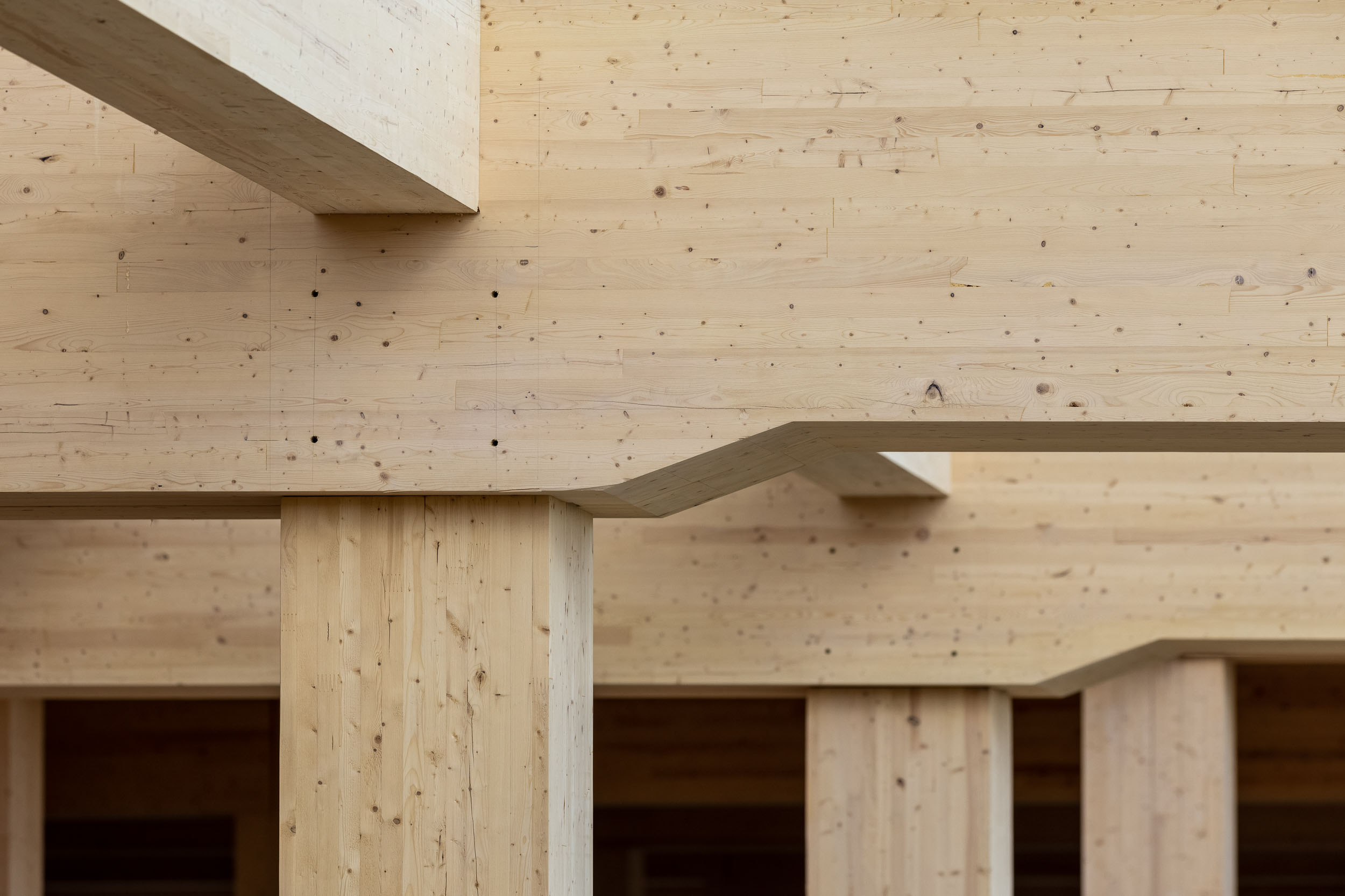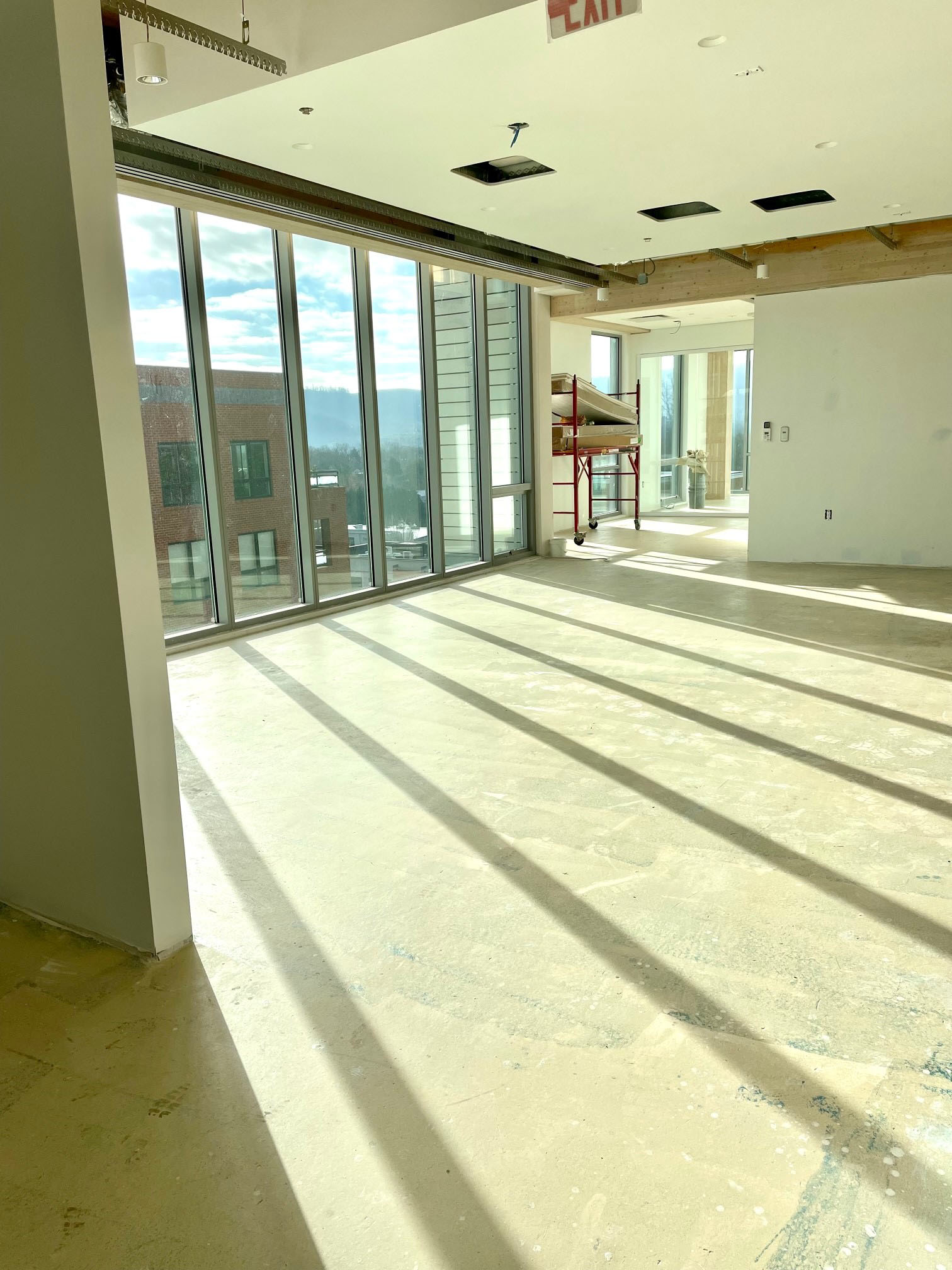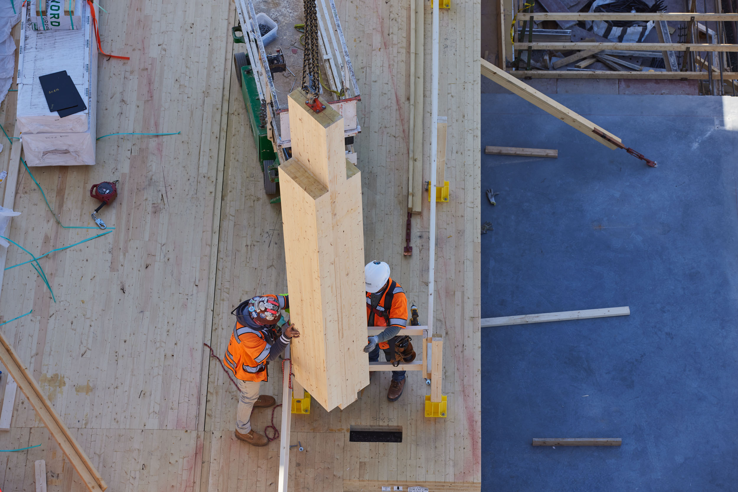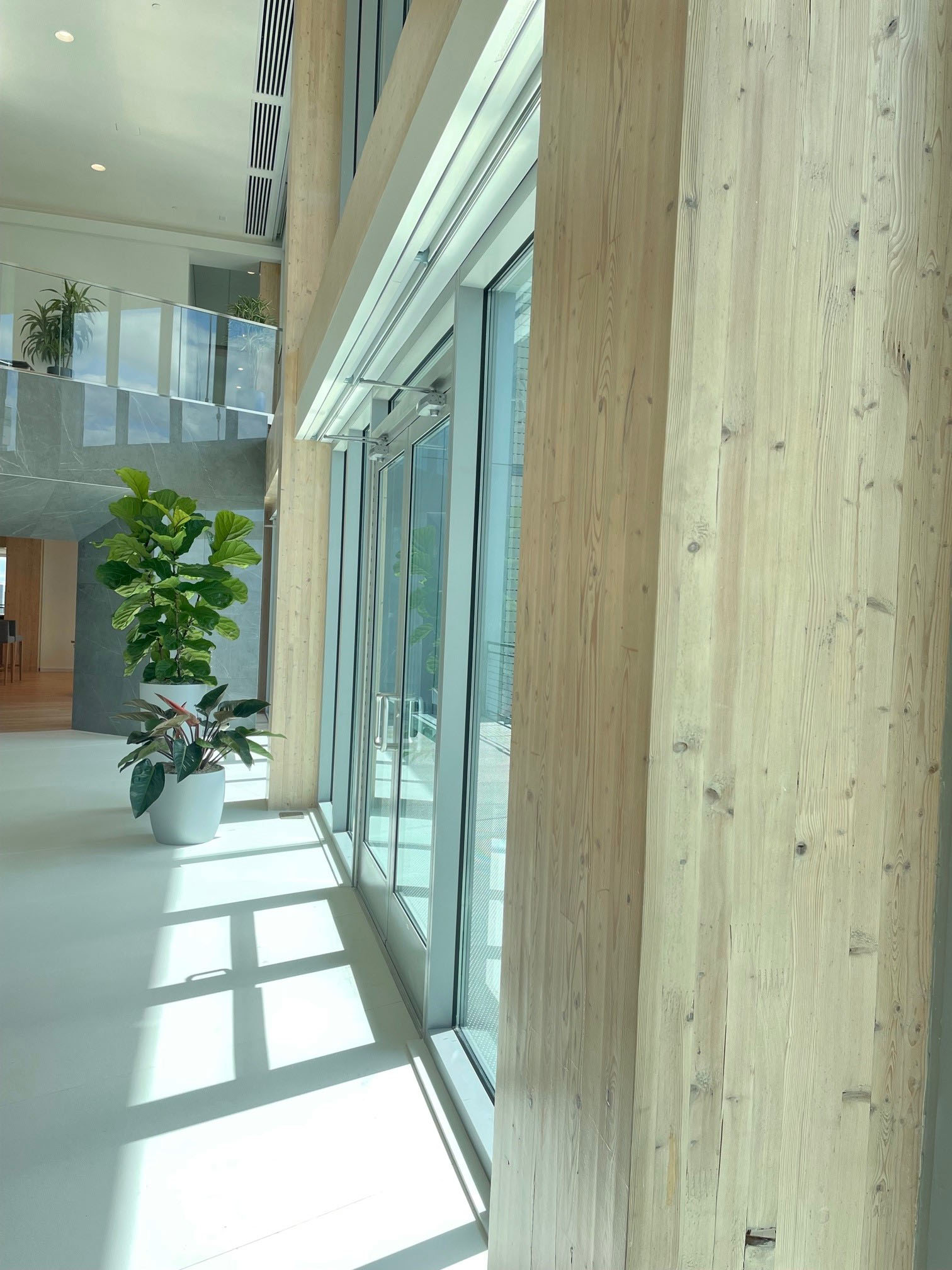 The use of structural wood harvested from fast-growth timber is one of the many sustainable features of Apex Plaza. Much like a healthy tree stores carbon dioxide, one square meter of cross-laminated timber can remove approximately one ton of the greenhouse gas from the atmosphere. Additionally, the building’s 875 solar panels are designed to produce as much electricity as lead tenant Apex Clean Energy consumes in a given year, leaving the company with net-zero electricity use.