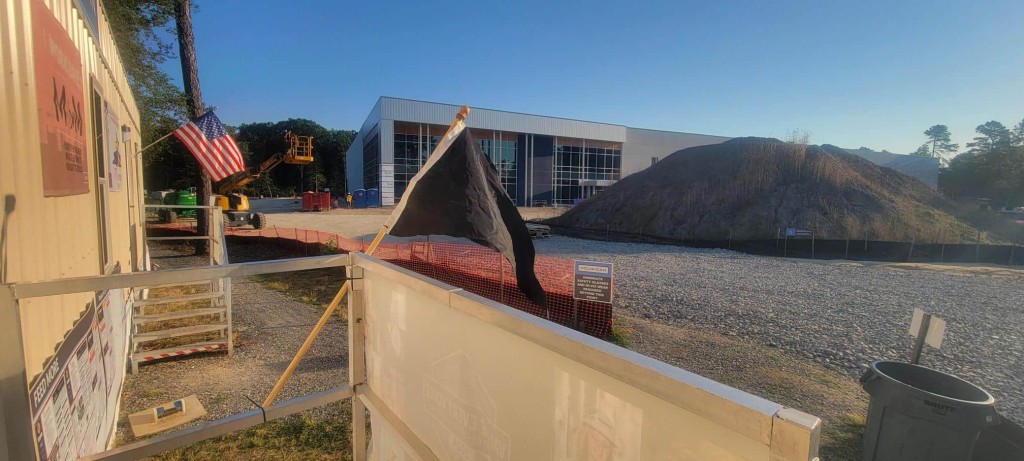 The Feed More site flying a black flag on a day when the heat index was above 95 degrees. This signals the workers that all must take extra heat precautions.